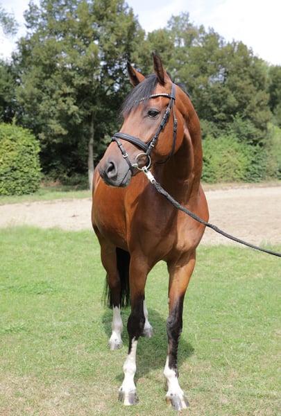 Beautiful, performance-ready Westphalian gelding for sale from private owner. We are looking for a new home for our talented show-jumping gelding. He has placed up to M level in show jumping and always wants to jump to the other side. He confidently and reliably navigates the course and has many successes to show for it. He reliably jumps changes and is trained in dressage up to L-M level. He has been presented with a young rider in the WBO category and has directly placed in E and A dressage. He is safe and fearless in the terrain. He is well-behaved, easy to handle, and suitable for ambitious riders. A good vet check with pictures from 11/2023 is available. The gelding comes from an excellent lineage. Diarado (a stallion successful up to S level in show jumping) x Curd (also a stallion successful up to S level, performance-tested, tracing back to Come On - Acord 2) On the maternal side, the well-known names Pilot and Frühlingsball appear in the pedigree. If you are interested or would like more information, we look forward to your message with a brief note on what kind of partner you are looking for. Video available for serious inquiries.