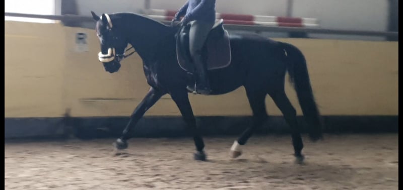 Zum Verkauf steht ein lackschwarzer, sympathischer Wallach im besten Alter Abstammung: Vater Totilas Mutter Goldlack Geb. 29.5.2011 Zuchtgebiet Westfale Größe ca 1,69 m Toto Black ist im Umgang stets freundlich und seinem Menschen zugewand. Er ist sitzbequem in allen Grundgangarten und zeigt viel Bewegungsfreude. Ausbildungsstand bei meinem Erwerb gutes A-Niveau, Dressur, von mir nur freizeitmäßig geritten. Bietet Potential zur weiteren Förderung. Ob unter dem Sattel, an der Longe oder bei der Bodenarbeit, er zeigt sich immer leistungsbereit und motiviert. Toto ist gut sozialisiert und verträglich, auch in Herdenhaltung. Aktuell 4-fach beschlagen. Regelmäßig geimpft und entwurmt. Schmiede- und verladefromm.