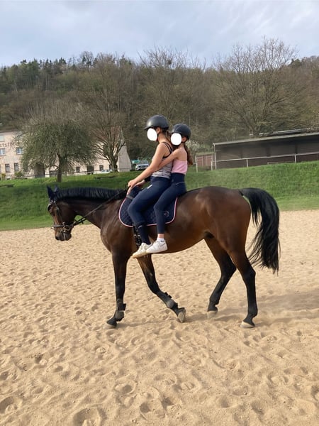 Cockney est un magnifique hongre Westphalien équilibré de 14 ans. Sa taille au garrot est de 1,70 m. En tant que cheval polyvalent, il se montre brave en balade (en solo comme en groupe), et a obtenu des classements en saut d'obstacles en L et en dressage en A. Cependant, il est vendu en tant que cheval de loisir, et nous recherchons une place avec beaucoup de pâturage. De grands boxes avec beaucoup d'agitation lui causent du stress, tout comme une simple stabulation. Cockney a besoin d'une conduite ferme et sécurisante, il n'est donc pas vraiment adapté aux enfants ou aux cavaliers peu confiants. Il ne présente pas de difficultés lors de la ferrure ni lors du chargement. Son dernier contrôle vétérinaire datant de l'année dernière est disponible. Il a tendance à se cabrer lorsqu'il est attaché à la longe. Pour plus de photos ou vidéos, je me ferai un plaisir de vous les envoyer. Les demandes uniquement par téléphone au 0176 82413724.