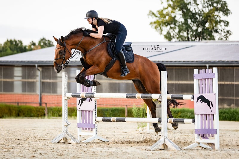 Aufgrund von Reitsportaufgabe biete ich hier meinen total lieben Wallach zum Verkauf an. Cassini ist mein absolutes Herzenspferd, daher suche ich für ihn ein 5* Zuhause, wo er genauso lieb gehabt wird, wie bei uns und natürlich auch fair behandelt wird. Cassini ist in meinem Besitz seit er 6 Jahre alt ist. Er ist ein Allrounder, aber trotzdem hat er mehr Spaß am Springen, braucht dort aber einen Reiter, der ihm die nötige Sicherheit gibt. Dressurmäßig ist er auf einem gutem A-/L-Niveau, kann aber durchaus auch einzelne höhere Lektionen. Allerdings sitzen diese nicht perfekt und benötigen noch Feinschliff, da wir das alles nur so spielerisch erarbeitet haben und diese auch nicht regelmäßig abrufen. Er ist absolut fein im Maul und zeigt einem auch schnell, wenn man dort zu hart mit der Hand ist. Daher auch nicht für Anfänger geeignet. KEIN Steiger/Bocker. Cassini ist für jeden Spaß zu haben, egal ob im Gelände (in der Gruppe) oder Zuhause ohne Sattel z.b., er macht alles brav mit. Gelegentlich saßen auch mal kleine Kinder mit Ausbindern auf ihm drauf, dies macht er auch sehr brav mit. Er ist bis auf eine OP am Auge (Sarkroidentf.) und einen gezogenen Zahn gesund. Er hat seit dieser OP keinerlei Einschränkungen, nur ein paar weiße Haare unter dem linken Auge. Cassini war außerdem regelmäßig beim Schmied sowie Tierarzt vorstellig. Alle Impfungen inkl. Herpes wurden durchgeführt. Hänger fahren stellt auch keinerlei Probleme dar. Zubehör (Sattel, Kandare, div. Schabracken und Abschwitzdecken, Bemer Decke, usw.) können gegen einen Aufpreis dazu erworben werden. Ich verkaufe ihn wirklich nur schweren Herzens, aber ich werde ihm einfach nicht gerecht und es wäre daher egoistisch nicht Pro Pferd zu entscheiden! Ich könnte mir ihn auch gut als Besteller vorstellen, wo er auch viel rauskommt. Bei ernsthaftem Interessen freue ich mich auf eine Nachricht von Ihnen! Mit freundlichen Grüßen S. Weißhaar