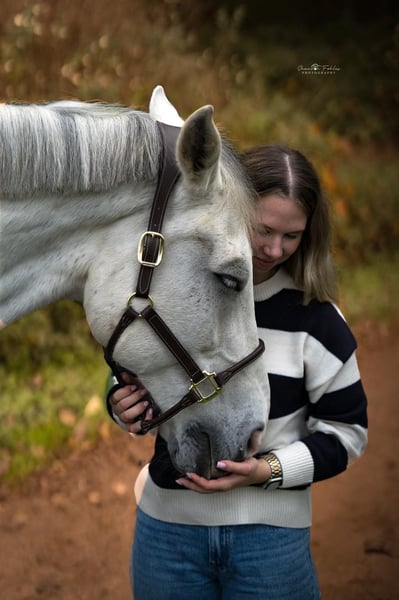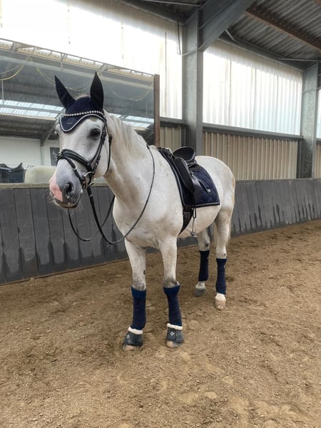 Westphalian Grey Gelding – Loving Leisure & Jumping Partner with Charm Casanova is a 16-year-old Westphalian gelding (born January 24, 2009) with a height of approximately 16.1 hh. He is a very sweet, affectionate grey who enjoys human company and always presents himself in a friendly manner. Casanova was trained up to M* level by the breeder, then in second hand up to L, and has mostly been used at A* to A** level with me. He easily handles individual jumps up to about 130/135 cm. He works motivatedly and is familiar with groundwork, dressage, lunging, double longe, jumping, hacking, and walks. Different riders pose no problem for him. In the field, he is well-behaved but a bit shy when alone and feels much more comfortable in company, preferably following another horse. In dressage, he finds it difficult to maintain consistent contact and to swing truly through his body, so he needs a sensitive and patient rider in this discipline. In handling, Casanova is completely uncomplicated: he is used to being tied on one or both sides, whether in the grooming area, stable aisle, or wash box. He enjoys grooming, washing, clipping, and daily preparation. He is very well-behaved at the blacksmith and has always been shod with full shoes. On pasture or paddock, he gets along well both alone and with other horses. He has shown no vices such as rearing, kicking, or bucking. He is generally healthy. He has a dust allergy but copes well with moist or steamed hay and has shown no issues since April 2025 when fed normal dry hay from the manger. Additionally, due to an accident as a foal, he has a crooked nasal septum that causes a breathing noise but does not impair him. Blood gas analyses were within the normal, good range. Due to his age, Casanova is an ideal reliable leisure partner who still enjoys occasional competition and has always behaved well there. He is located in the Kleve district and is offered for €10,500 negotiable. For inquiries or questions, please feel free to contact +49 177 4635428. To prevent riding tourism, we charge €30 per trial ride, which will be credited upon purchase.