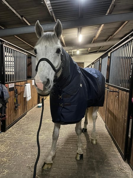 Westfaalse schimmelhengst – liefdevolle vrijetijds- en springpartner met charme Casanova is een 16-jarige Westfaalse hengst (geboren op 24-01-2009) met een stokmaat van ongeveer 170 cm. Hij is een zeer vriendelijke, knuffelige schimmel die geniet van nabijheid tot mensen en zich altijd vriendelijk gedraagt in de omgang. Casanova is bij de fokker tot M*-niveau gesprongen, daarna in tweedehandsgebruik tot L-niveau, en bij mij voornamelijk ingezet op A*- tot A**-niveau. Enkele sprongen tot ongeveer 130/135 cm gaat hij zonder problemen aan. Hij werkt gemotiveerd mee, kent grondwerk, dressuur, longeerwerk, dubbele longe, springen, buitenritten en wandelingen. Verschillende ruiters vormen geen probleem voor hem. In het terrein is hij braaf, maar gaat hij alleen wat schuchter, en voelt hij zich in gezelschap duidelijk prettiger, waarbij hij liever achter een ander paard loopt. In de dressuur vindt hij het moeilijk om een constante aanleuning te behouden en echt door het lichaam te schwingen, daarom heeft hij een gevoelige en geduldige ruiter nodig. In de omgang is Casanova volledig unkompliziert: hij kent het om aan beide zijden vastgebonden te worden, zowel op de poetsplaats, in de stalgang als in de wasbox. Hij geniet zichtbaar van poetsen, wassen, scheren en het dagelijkse klaar maken. Bij de hoefsmid is hij zeer braaf en draagt hij sinds jaar en dag volledig hoefbeslag. Op de wei of in de paddock kan hij zowel alleen als met andere paarden goed uit de voeten. Ongewenst gedrag zoals steigeren, trappen of bokken heb ik bij hem niet gezien. Gezondheidsmatig is hij in principe fit. Hij heeft een stofallergie, maar kan probleemloos met nat of gestoomd hooi omgaan en vertoonde sinds april 2025 ook geen afwijkingen bij normaal droog hooi uit de hooibak. Daarnaast heeft hij door een ongeluk als veulen een scheef neusbeen, wat een ademgeluid veroorzaakt, maar hem niet belemmert. Bloedgasanalyses waren ongestoord en in de goede range. Vanwege zijn leeftijd is Casanova ideaal als betrouwbare vrijetijdsgenoot, die echter nog graag aan wedstrijden meedoet en zich daar altijd braaf heeft gedragen. Hij staat in de Kreis Kleve en wordt aangeboden voor €10.500, VB. Bij interesse of vragen kunt u gerust bellen naar +49 177 4635428. Om misbruik van proefritten te voorkomen, vragen wij €30 per proefrit. Deze kosten worden bij aankoop uiteraard verrekend.