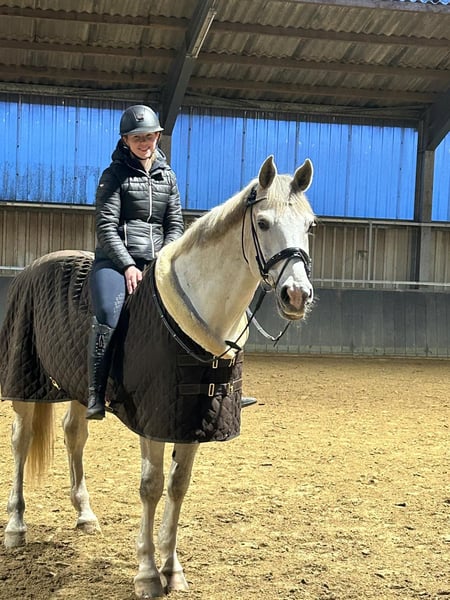 Westfälischer Schimmelwallach – liebevoller Freizeit- & Springpartner mit Charme Casanova ist ein 16-jähriger Westfalen-Wallach (geb. 24.01.2009) mit einem Stockmaß von ca. 170 cm. Er ist ein sehr lieber, verschmuster Schimmel, der die Nähe zum Menschen genießt und sich im täglichen Umgang stets freundlich zeigt. Casanova wurde beim Züchter bis M* gesprungen, danach in der zweiten Hand bis L und bei mir überwiegend auf A*- bis A**-Niveau eingesetzt. Einzelne Sprünge bis etwa 130/135 cm meistert er problemlos. Er arbeitet motiviert mit, kennt Bodenarbeit, Dressurarbeit, Longieren, Doppellonge, Springen, Ausritte und Spaziergänge. Unterschiedliche Reiter stellen für ihn kein Problem dar. Im Gelände ist er brav, geht alleine aber etwas schüchtern und fühlt sich in Begleitung deutlich wohler, wobei er es bevorzugt, hinter einem anderen Pferd zu laufen. In der Dressur fällt es ihm schwer, eine konstante Anlehnung zu halten und reell durch den Körper zu schwingen, weshalb er hier einen einfühlsamen und geduldigen Reiter braucht. Im Umgang ist Casanova absolut unkompliziert: Er kennt es, ein- oder beidseitig angebunden zu werden, sowohl auf dem Putzplatz, in der Stallgasse als auch in der Waschbox. Putzen, Waschen, Scheren und das tägliche Fertigmachen genießt er sichtlich. Beim Schmied ist er sehr brav und trägt seit jeher einen Vollbeschlag. Auf der Wiese oder dem Paddock kommt er sowohl alleine als auch mit anderen Pferden zurecht. Unarten wie Steigen, Treten oder Bocken zeigte er bei mir nicht. Gesundheitlich ist er grundsätzlich fit. Leider kann ich durch eine Erkrankung nicht mehr reiten, weswegen für Casanova ein neues Zuhause gesucht wird. Er wird nur in gute Hände abgegeben, aber grundsätzlich gilt: Platz vor Preis! Aufgrund seines Alters eignet sich Casanova ideal als zuverlässiger Freizeitpartner, der aber weiterhin gerne Turnierluft schnuppert und sich dort stets brav gezeigt hat. Er steht im Kreis Kleve und wird für 9.500 € VB abgegeben. Bei Interesse oder Fragen melden Sie sich gerne unter +491774635428. Um Reittourismus zu verhindern, nehmen wir 30€ pro Probereiten. Diese werden beim Kauf natürlich verrechnet.