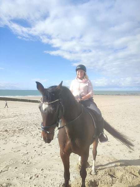 Te koop staat een uiterst betrouwbare en goedige vrijetijdsruiter, geboren in 2007 (19 jaar oud), die zich uitstekend leent voor beginners en herintreders. Dit betrouwbare paard overtuigt door zijn evenwichtige karakter en kalmte in elke situatie. Of hij nu alleen of in een groep rijdt – in het terrein toont hij zich altijd kalm, zeker in zijn passen en alert. Hij is bekend met het wegverkeer, landbouwmachines en diverse omgevingsinvloeden, en blijft daarbij rustig en altijd goed te controleren. Dit onderscheidt hem: - Zeer braaf in omgang en onder het zadel - Geschikt voor beginners en aangenaam om te rijden - Veilig en betrouwbaar in het terrein - Laadbaar en probleemloos in transport - Braaf bij de smid en dierenarts - Ook geschikt voor kleinere dressuurwedstrijden en daarbij nerveus kalm. Vanwege zijn leeftijd heeft hij af en toe kleine problemen met de botten (artrose), vooral in de rug, waardoor hij niet meer geschikt is voor het springen. Afhankelijk van het weer kan hij soms wat gevoelig reageren. Voor rustige buitenritten en lichte dressuurwerk is hij echter perfect. Hij is de ideale metgezel voor iedereen die op zoek is naar een eerlijk, ervaren paard voor ontspannen uren in het zadel of af en toe een wedstrijd. Geen sportpaard, maar een echt hartendier. Bij interesse horen we graag van u voor een persoonlijk kennismakingsgesprek. Op verzoek kan de zadel en alles wat erbij hoort worden meegekocht.