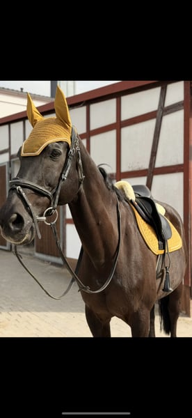With a heavy heart, I am parting with my 21-year-old gelding. He has been in my possession for 10 years and has always been in excellent health, never missing a beat due to injury. Vantast was previously successful in competition up to M-level show jumping and has been used mainly for riding at home, with only a few starts in A* classes. Due to his age, he is no longer suited for competitive sport. We are looking for a loving home where he can enjoy dressage and leisure riding or simply be a pasture companion during the day. Currently, he is comfortably ridden about 3 to 4 times a week, with additional ground work and lunging twice a week. Even if he is left standing for several days, he takes it in stride. He still enjoys pole work and occasional jumping, where he really comes alive. However, he is not suitable as a beginner’s horse, as he can pick up some speed when jumping, which requires experienced handling. In dressage, he is very easy and pleasant to ride for anyone. He is not suitable for trail riding, as he can be quite spooky outdoors. He will only be placed in the best hands and is not intended as a sport or school horse. We wish for him to find a home where he can enjoy his remaining years peacefully.
