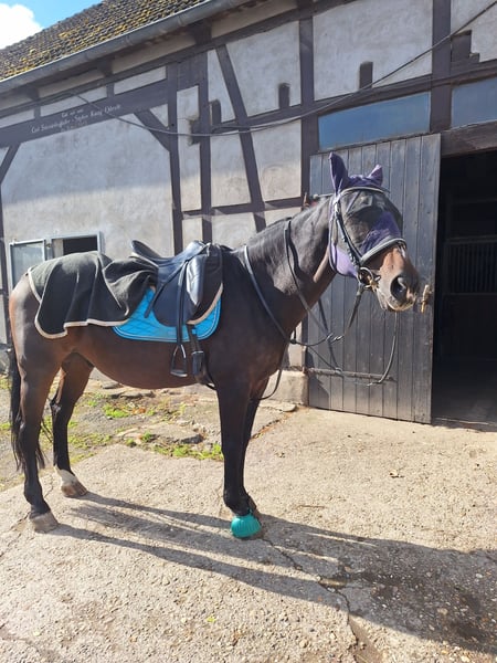 Westfale Wallach, geb. 2003, in einem eleganten Dunkelbraun, überzeugt durch sein freundliches Wesen und seine vielseitigen Einsatzmöglichkeiten. Mit einem Stockmaß von 162 cm bietet er eine harmonische Größe für den Freizeitbereich und ist sowohl für erfahrene Reiter als auch für ambitionierte Einsteiger geeignet. Der gut gerittene Westfale zeigt sich im Umgang stets zuverlässig und angenehm im Verhalten. Seine solide Grundausbildung macht ihn zu einem verlässlichen Partner für abwechslungsreiche Ausritte, Spaziergänge und entspannte Stunden im Gelände. Dank seines ausgeglichenen Charakters ist er auch für weniger erfahrene Reiter gut geeignet und bringt Freude in jeden Alltag. Ob für die tägliche Freizeitgestaltung oder als zuverlässiger Begleiter für gemeinsame Ausflüge – dieser Westfale verbindet typische westfälische Qualität mit einem angenehmen Temperament. Ein tolles Pferd, das durch seine freundliche Art und sein angenehmes Gangwerk besticht.