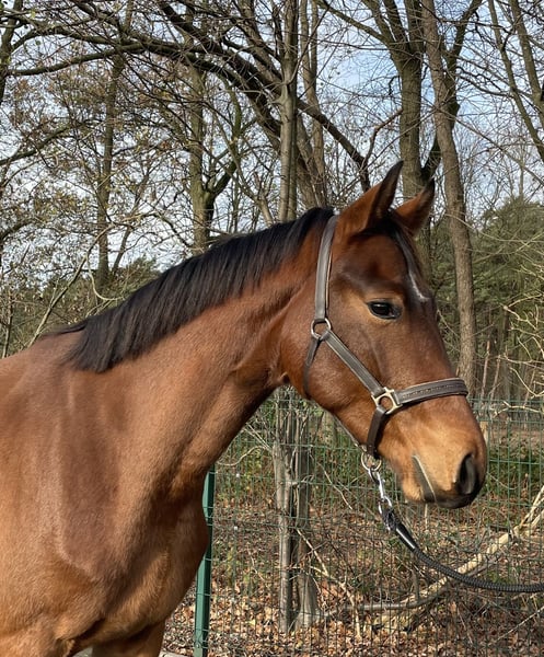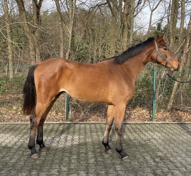 Schöner Brauner Wallach geboren 03/2023 mit drei besseren GGA ausgestattet, sowie einen tollen Körperbau. Stammt von Escolar x Cristallo I ab und ist derzeit 1,68 groß. Kommt direkt aus der Sommerweide und ist seit kurzem im Stall.