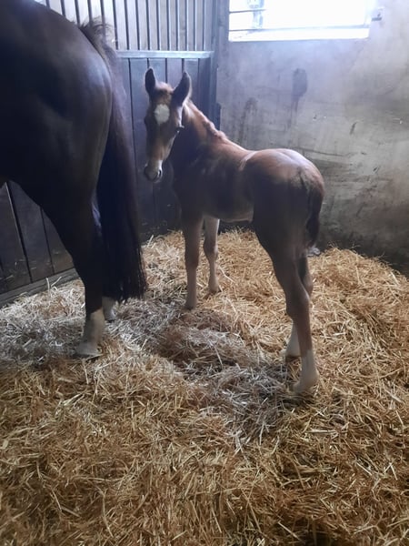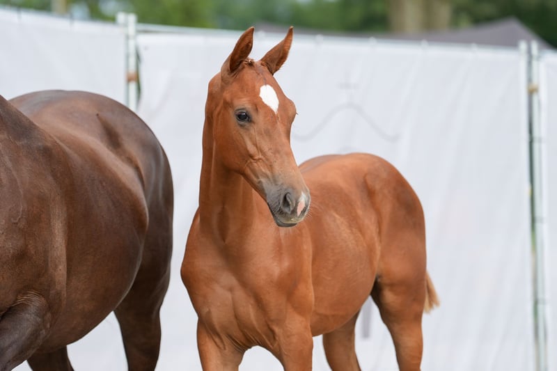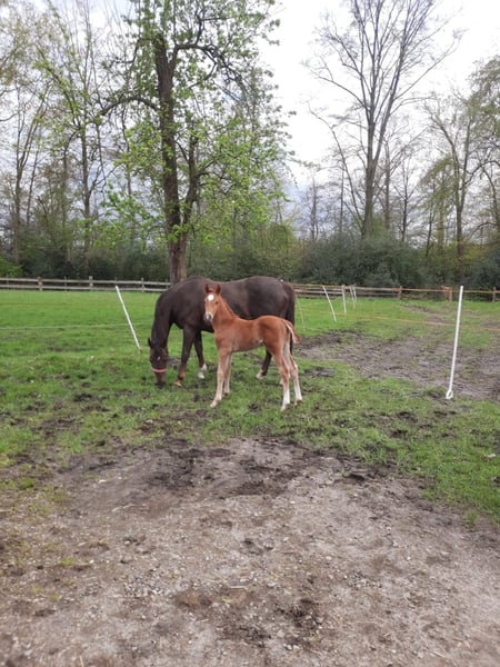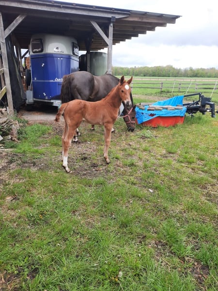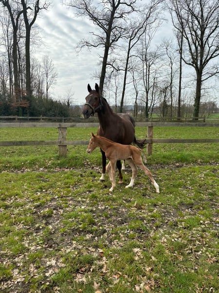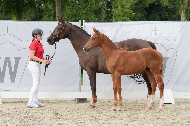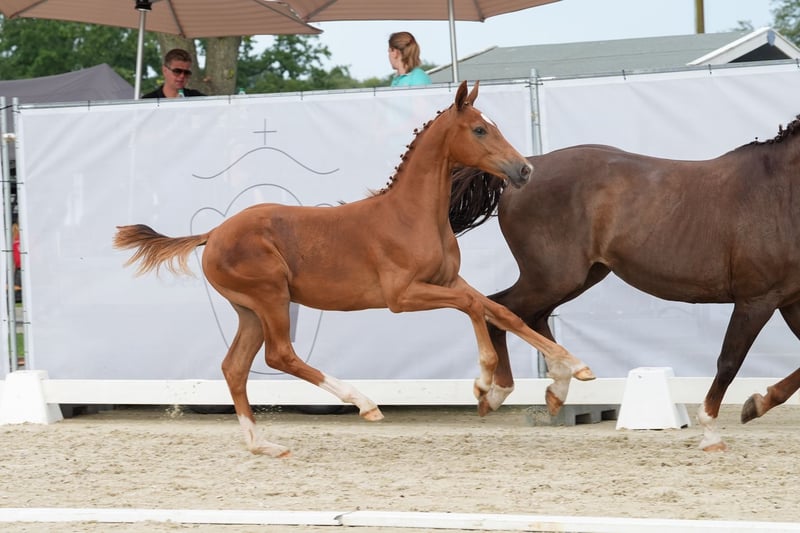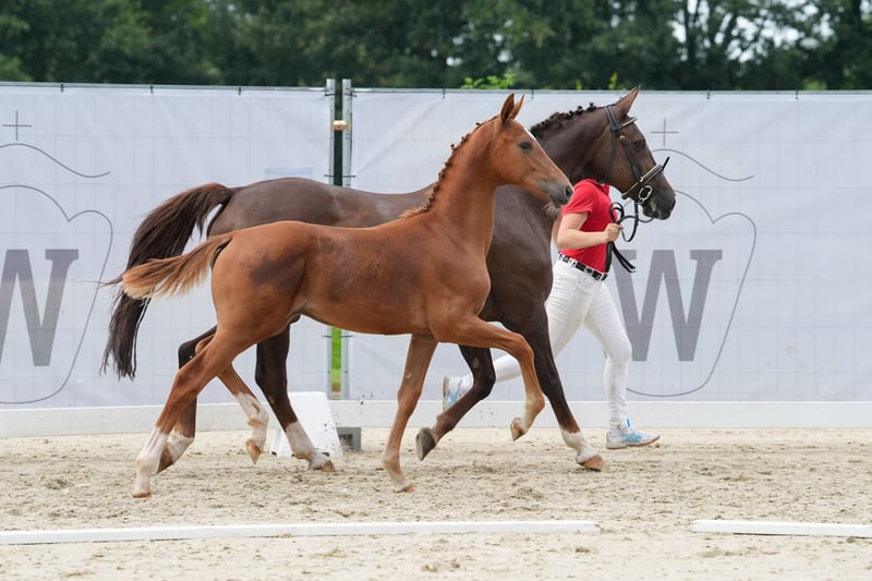 The foal is by the main premium stallion Federer (Livaldon, Canstakko) from Sosath in Lemwerder, who had an outstanding first foal crop. The dam is a daughter of Fürst Piccolo, who stands for dressage horses and breeds at the NRW State Stud. She is also a daughter of Weinberg, who has produced both dressage and show jumping horses and stands for toughness. The mare is 20 years old and has a TÜV certificate with no findings. She also passes this on to her children. The foal is long-legged, strong-moving and has a good rhythm. It is very typey and clear-headed. He is characterized by his people orientation.