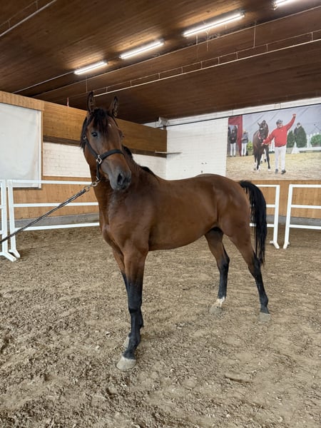 Jeune étalon élégant avec une excellente lignée et un potentiel au saut. À vendre directement du sélectionneur (ou de l'éleveur) à des mains responsables. Actuellement, il mesure environ 160 cm. La dernière vidéo date du 17 septembre en tant qu'étalon.