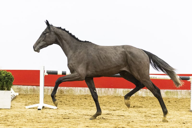 A light-footed horse that is quick off the ground. Modern in appearance and long-legged in type. He shows an athletic model with good balance and a fresh expression. A sporty type with natural lightness and an easy way of jumping. Sire Comilfo Plus Z (1.45m) is a son of Comme il Faut (1.60m Grand Prix) out of a Balou du Rouet damline. Comme il Faut, by Cornet Obolensky (1.60m) out of Ratina Z (1.60m), is one of the most influential sires of modern top jumpers. Comilfo Plus Z produced Landon (1.65m), Cordis Totalis Z (1.60m) and Comanchero de Poteau Z (1.55m). Dam Jara (by Clarimo 1.60m) descends from the strong Holsteiner family of M-Corrida (by Caletto I). Second dam M-Corrida produced Henriette P (1.50m) and Call Me Cabitt S (1.40m). Further in the damline we find several 1.50m–1.60m performers such as Countess G (1.60m), Cabochon (1.60m, approved Holstein), Quax 42 (1.50m), Capuccino 11 (1.50m), Calderon (1.50m), Hazel Girl (1.50m), Jubilate (1.50m) and multiple 1.40m–1.45m horses including Fashion TCS (1.45m) and Icalverdi de Ceia (1.45m). Approved stallions such as North Pole N (KWPN) also originate from this line. A damline with proven 1.45m–1.60m performance.