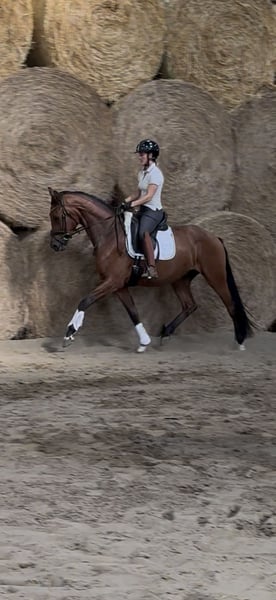 Zazou – 3-year-old gelding by Zuperman x Fürstenball Born and raised in a species-appropriate environment, Zazou is now gently starting his training under saddle and consistently shows a willingness to learn, is well-behaved, and pleasant to handle. This large-framed youngster impresses with three above-average basic gaits – particularly noteworthy is his ground-covering, rhythmically secure walk. His dynamic hindquarters and remarkably high rideability suggest a promising future in dressage sport. Zazou is still at the beginning of his riding career and is ideally suited for riders looking to secure a talented young horse with potential. He is: • Loading-friendly • Shoeing-friendly and regularly presented to the farrier • Regularly dewormed • Dental check has been performed A promising prospect for sport or elevated leisure – from a reputable background and with solid basic training.