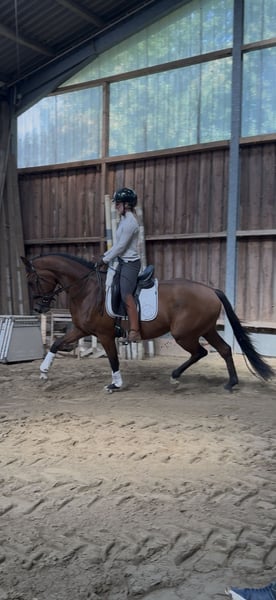 Zazou – Hongre de 3 ans par Zuperman x Fürstenball Né chez nous et élevé dans le respect de son bien-être, Zazou commence doucement son éducation sous la selle et se montre toujours désireux d'apprendre, bien élevé et agréable à manipuler. Ce jeune cheval de grande taille impressionne par ses trois allures de base au-dessus de la moyenne – il convient de souligner particulièrement son pas ample et régulier. Son arrière-train dynamique et sa remarquable aptitude à la monte laissent présager un avenir prometteur dans le sport équestre. Zazou est encore au début de sa carrière équestre et convient parfaitement aux cavaliers qui souhaitent acquérir un jeune cheval talentueux avec des perspectives. Il est : • Facile à charger • Au fer et présenté régulièrement au maréchal-ferrant • Régulièrement vermifugé • Contrôle dentaire effectué Un jeune prometteur pour le sport ou les loisirs de haut niveau – issu d'une excellente lignée et avec une formation de base solide.