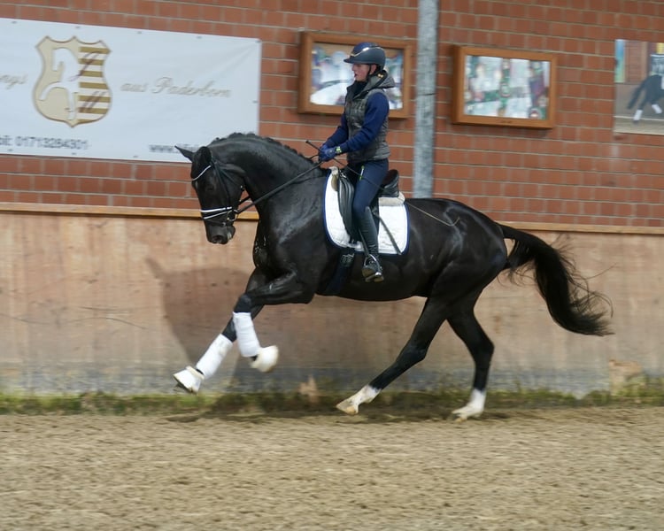 Impressive 3-year-old Westphalian gelding with excellent basic qualities. A real eye-catcher and at the same time a promising talent for dressage. This young gelding already shows promising abilities and is well-mannered. He has a balanced temperament and always tries to do everything right. With his high willingness to learn and his desire to please, he is ideally suited for ambitious riders who want to excel in dressage. He is already well-lunged and ready for the next training step. His friendly nature and willingness to perform make him an ideal partner for the future. The gelding is healthy, vaccinated, and regularly dewormed. He is familiar with handling other horses and is socially compatible both in the stable and in the pasture. If you are looking for a talented and affectionate dressage horse, then this Westphalian is just right for you! If you are interested or need further information, please feel free to contact me. We look forward to your message!
