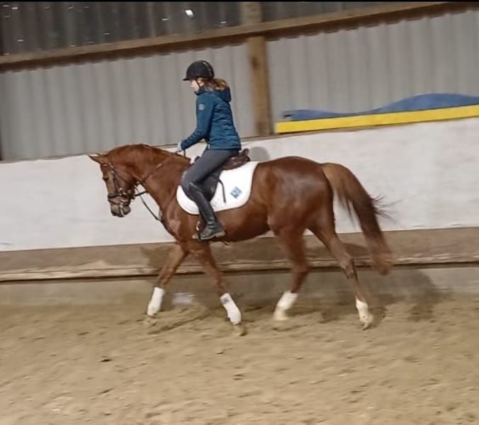V: Hickstead Blue x MV: Coronas x MMV: Carthago, Wallach Westfale, Stckm. 154cm, 4j. brav Springen, Dressur, Hunter, optimal für Mädchen Zum Verkauf steht dieser wunderschöne, sympathische, witzige 4j. Wallach, mit allerbester Springabstammung, 3 guten Grundgangarten, Springvermögen und einem Charakter aus Gold. "Herkules" wurde schonend angeritten und zeigte sich dabei stets brav, schön rittig, geht einfach am Zügel und lässt sich wunderbar sitzen. Er ist alterentsprechend sehr brav und unerschrocken. Kein steigen, kein Buckeln, kein Durchgehen. Er springt ganz einfach einen kleinen Parcours, sowie einzelne Sprünge auch höher. Er ist willig, mutig und geschickt dabei. Bei mir wird er auch von einem 13 jährigen Mädchen mitgeritten und gesprungen was absolut unproblematisch ist, es klappt sogar ganz wunderbar. Herkules ist ein toller Youngster mit Potenzial fürs Springen, als Hunter, sowie für die Dressur. Sein hübsches Aussehen und seine nette Art machen Ihn einfach perfekt! Herkules läuft barhuf, wohnt in einer Box mit Außenfenster, geht bei mir mit 2 Wallachen aufs Paddok, kennt Führmaschine, Außenplatz, Halle und Longe. Für dieses tolle Pferd wünsche ich mir einen Bestplatz mit Sozialkontakten, Winterauslauf und Abwechslung. Er wird nur in beste Hände verkauft, keine Händler, kein Notverkauf! Verkauf erfolgt im Auftrag. 0170 9 333 000 Jana Ich freue mich auf nette Anfragen:-)