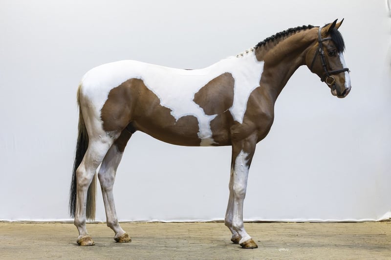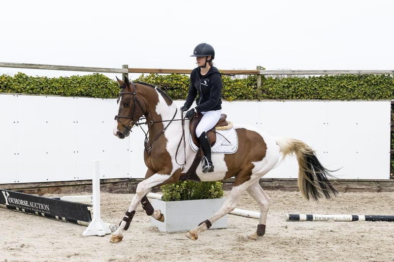 Eye-catching piebald with a commanding presence. Light-footed and endowed with plenty of blood, power, and quality in the jump. A true standout that immediately draws attention. Demonstrates a good attitude and easily picks up work. Only 2 months under saddle. Sire Turfhorst Total Diamond PS – son of Totilas (Grand Prix dressage) from the Gribaldi line, renowned for attitude, movement, and quality. Dam Suleika K – daughter of Saintico (with PSG/Inter I dressage and jumping/eventing experience). Damline Granddam Red River Lady – PSG/Inter I dressage. From this lineage: Merlijn – 1.60m jumping Multiple horses at Small Tour / Advanced level Further in the pedigree: Florida Queen – Grand Prix dressage Vendor Go – Grand Prix dressage Iwan – Grand Prix dressage Caramba – Grand Prix dressage A strong international performance family with Grand Prix dressage and sport success across multiple disciplines.