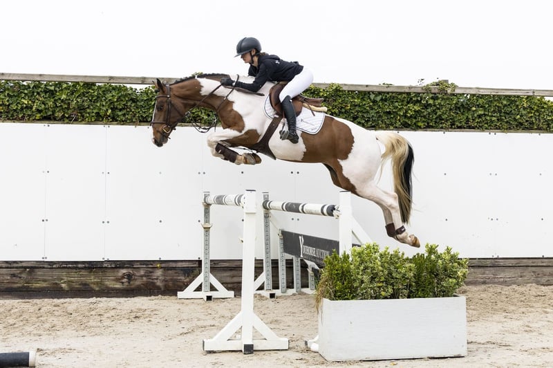 Striking piebald with a lot of presence. Light-footed with plenty of blood, push and quality on the jump. A real eye-catcher that immediately stands out. Shows a good attitude and picks up the work easily. Just 2 months under saddle. Sire Turfhorst Total Diamond PS – son of Totilas (Grand Prix dressage) from the Gribaldi line, known for attitude, movement and quality. Dam Suleika K – daughter of Saintico (PSG/Inter I dressage and jumping/eventing experience). Damline Granddam Red River Lady – PSG/Inter I dressage. From this line: Merlijn – 1.60m jumping Multiple horses at Small Tour / Advanced level Further in the line: Florida Queen – Grand Prix dressage Vendor Go – Grand Prix dressage Iwan – Grand Prix dressage Caramba – Grand Prix dressage Strong international performance family with Grand Prix dressage and sport in multiple disciplines.
