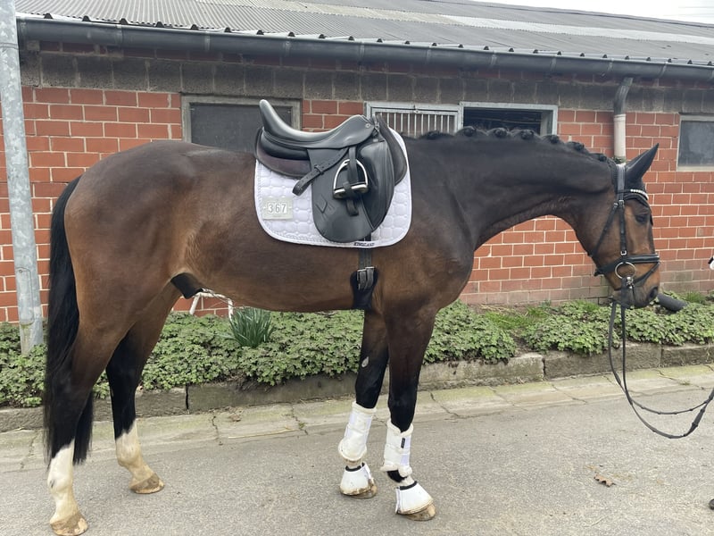 Zum Verkauf steht ein 4-jähriger Wallach mit sehr guten Anlagen für Dressur und Freizeit. Das Pferd ist gut angeritten, brav im Umgang und zeigt sich unter dem Reiter bereits sehr gehorsam in allen drei Grundgangarten. Besonders hervorzuheben ist der sehr, sehr gute, raumgreifende Schritt sowie eine tolle, große und bergauf gesprungene Galoppade mit viel Qualität und Balance. Der Trab ist altersentsprechend in Entwicklung. Der Wallach steht aktuell noch am Anfang seiner Ausbildung und befindet sich mitten in der Entwicklung. Mit weiterer, reeller Förderung bringt er beste Voraussetzungen mit, sich zu einem zuverlässigen Sport- und Freizeitpartner zu entwickeln. Ein ehrliches Nachwuchspferd mit Perspektive, das durch seine Rittigkeit, seinen Charakter und seine Grundgangarten überzeugt. Bei seinem ersten Turniereinsatz konnte er sich direkt an zweiter Stelle platzieren.