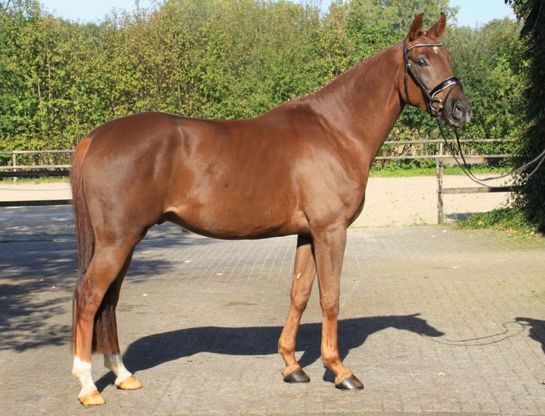 Valentino is a friendly riding gelding with three good basic gaits and excellent rideability. More information at www.dressagehorses-dedoncker.com