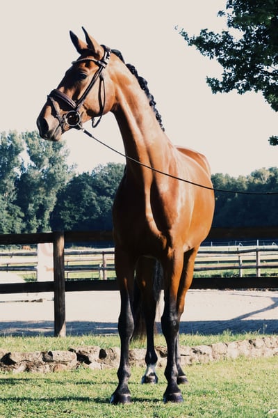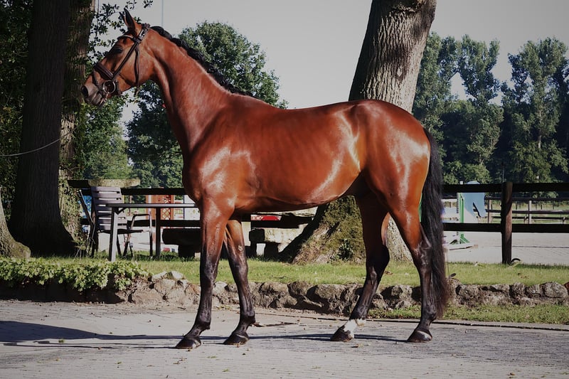 **Sales Advertisement: Beautiful Westphalian Gelding for Sale** We offer a talented Westphalian gelding for sale. **Features:** - **Breed:** Westphalian - **Gender:** Gelding - **Year of Birth:** 2022 - **Color:** Bay - **Height:** 168 cm - **Discipline:** Dressage This young gelding impresses with his elegant appearance and promising potential in dressage. With his friendly nature and willingness to learn, he is suitable for both experienced riders and ambitious beginners. He is well-mannered, well-educated, and has already gained a lot of experience under saddle. His balanced temperament and good basic training make him an ideal partner for the future. His sire, Zanetti, is himself successful in sport. This stallion already passes on a lot of quality. With a super walk, a great gallop, and excellent go, this gelding is certainly a fantastic horse for the sport. If you are interested or would like more information, we look forward to your message!