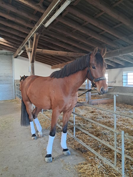 A la venta este talentoso potro de 4 años de Westfalia, hijo de Fürst Toto. "Fürstenherz" está en fase de entrenamiento, conoce el paso y el trote bajo la silla y es muy tranquilo en su manejo. Lamentablemente, a la edad de un año, perdió su ojo izquierdo debido a un accidente, aunque actualmente esto no le limita en nada. Está vacunado contra herpes, influenza y tétanos. Las radiografías están disponibles y sin hallazgos relevantes. Ideal para jinetes de ocio ambiciosos o también para competidores que buscan un compañero prometedor. La yegua madre, a pesar de su origen en la doma clásica, mostró también mucho talento en salto. Si está interesado o desea más información, no dude en contactarme. Las visitas se pueden concertar previa cita. ¡Esperamos su mensaje!
