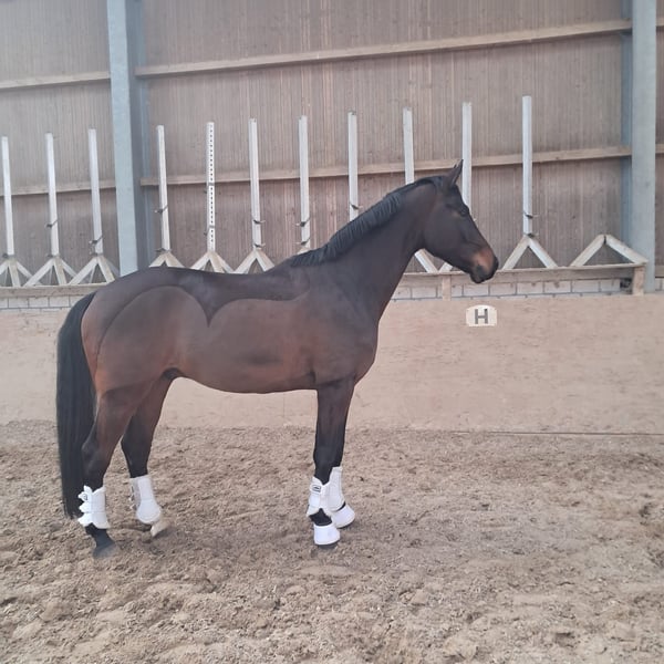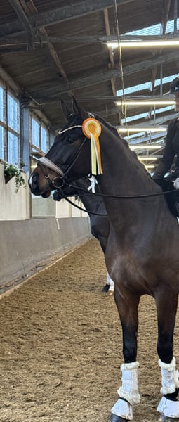 Zum Verkauf steht unser Wallach Valentin von Vivat Rex x Finest, der bereits mehrfach erfolgreich in Reitpferdeprüfungen platziert wurde und in dieser Saison direkt auf Anhieb seine erste Dressurpferde A für sich entscheiden konnte. Aktuell befindet er sich altersgerecht in weiterer Ausbildung und arbeitet motiviert an den Lektionen der Klasse L. Er überzeugt mit überdurchschnittlich guten Grundgangarten, Rittigkeit und einer positiven Arbeitseinstellung. Aufgrund von Aufgabe des Reitsports wird unser Valentin schweren Herzens abgegeben. Uns ist es wichtig, dass er ausschließlich in beste und passende Hände abgegeben wird! Gesundheit: Leichter Rückenengstand sowie ein kleiner Mini-Chip vorhanden der laut mehreren Tierärzten ohne Bedenken ist. Klinisch ist er komplett unauffällig. Weitere Infos: Bei ernsthaftem Interesse und mehr Informationen können Sie sich gerne melden.