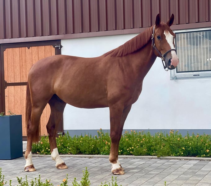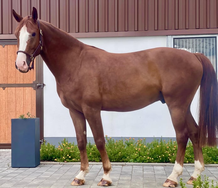 Na sprzedaż jest ten 4-letni wałach po Douglas VDL z matki Calido x For Pleasure. Doskonałe pochodzenie, które ma nadzieję na obiecującą przyszłość. Djumper przekonuje nie tylko swoją atrakcyjną maścią i posturą, ale także dużym potencjałem w skokach. Już pokazuje obiecujące podejścia i ma dużo radości z pracy. Jest spokojny w obcowaniu, dobrze wychowany i również w terenie bardzo łagodny. Idealny dla jeźdźca, który chce mu zapewnić solidne szkolenie i ma przyjemność z jazdy przez przeszkody. Proszę o kontakt telefoniczny lub przez WhatsApp.