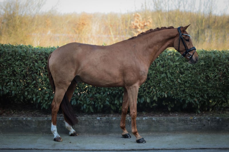 Compact, modern type with good basic gaits, especially notable for his walk and canter. Vangelis is very rideable, mentally clear, and pleasant to ride. Thanks to his uncomplicated nature and honest character, he is well-suited as a family horse as well as for amateurs or junior riders. In daily handling, he is well-behaved and will happily jump small obstacles if needed, demonstrating his versatility. X-rays are available. A charming young horse with good quality and a lot of joy under saddle. Please feel free to contact us by phone; a trial ride is always possible!