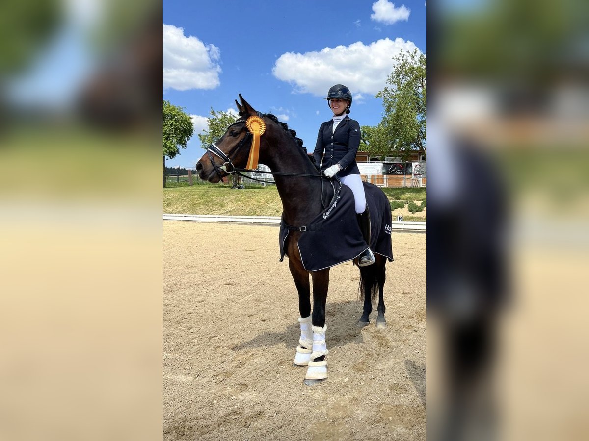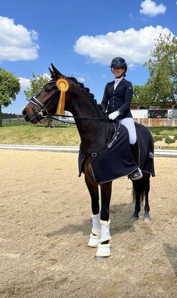 Zum Verkauf steht ein bildhübscher, im Hengsttyp stehender Wallach vom Ausnahmehengst Jovian, angepaart an eine Fürstenball-Stute aus bestem Mutterstamm! Just can‘t get enough war als Hengst in Westfalen gehört und wurde im Frühjahr 2024 angeritten! Nach einem Sieg bei seinem ersten Turnierstart durfte er nach dem kastrieren den Sommer 3-jährig nochmals auf der Wiese verbringen! Im Frühjahr 2025 wurde er wieder in Arbeit genommen & ist mittlerweile Dressurpferde L fertig! Er war bei jedem seiner Starts in Reitpferde und Dressurpferde A platziert, ist ein absolutes Verlasspferd, immer brav, zuverlässig, hat keinerlei Unarten und war nie verletzt! Er ist sehr schön zu reiten, besitzt viel Talent zur Versammlung und lernt schnell neue Lektionen! Außerdem macht er brav kleinere Sprünge unter dem Sattel, geht sehr brav alleine und in der Gruppe ins Gelände, ist unkompliziert beim Hufschmied, dem Verladen und dem Tierarzt. Er ist in Familienbesitz und seine Besitzer geben ihn schweren Herzens aus privaten Gründen ab. Er eignet sich hervorragend als Mädchen- oder Familienpferd, da er absolut zuverlässig und freundlich ist und sich trotz seines Alters schon sehr abgeklärt in allen Situationen zeigt! Die Röntgenbilder der Körung (Dezember 2023) sind vorhanden inkl. Rücken und ohne Befund. Anfragen bitte per WhatsApp: 0170/2779570