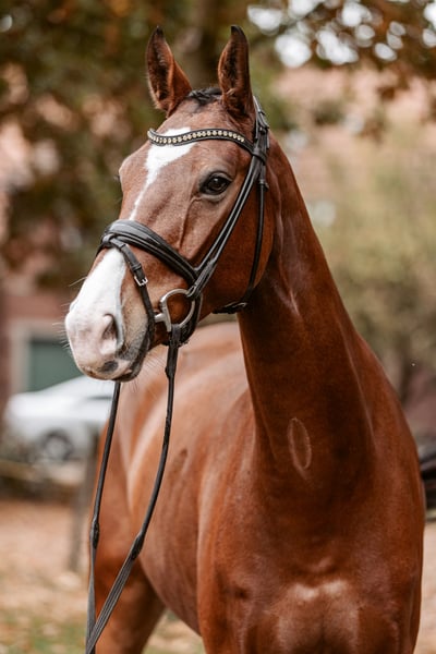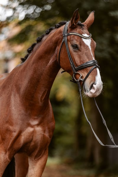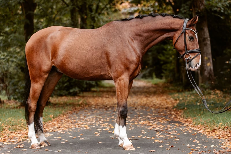 For sale is this modern and elegant 5-year-old gelding by De Niro's Son out of a Rubinstein I mare. He has been gently backed and is currently at a good level in dressage, approximately at Training Level A. Work on collection has already begun. He is equipped with three good basic gaits and plenty of impulsion. Notably, his very expressive and consistently rhythmical walk stands out. The gelding comes directly from the breeder and has been healthy so far. A recent veterinary check-up with no findings is available. He is also good with farrier and loading. Currently, he measures about 16.1 hh. He is well-behaved on the ground and under saddle, but he is sensitive and, due to his age and current training level, not suitable for beginners. A very rideable gelding who always strives to do everything correctly. 🌟This is a horse with great potential that wants to be challenged and developed🌟