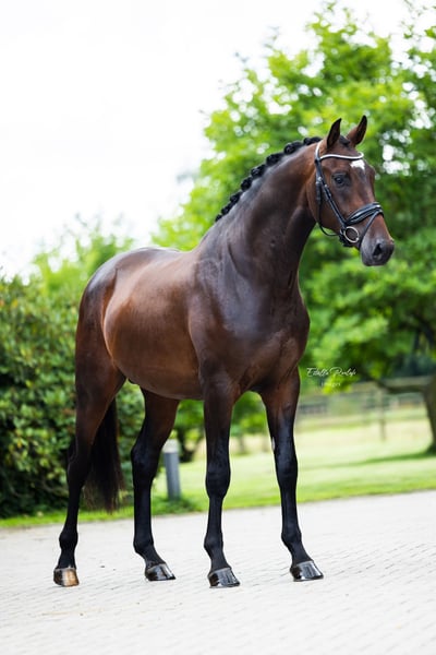 Dieser 4-jährige Wallach überzeugt mit einem außergewöhnlich ruhigen Charakter und hervorragender Qualität für die Zukunft. Er verfügt bereits über Turniererfahrung und konnte sich beim Landeschampionat Westfalen 2024 für 3-jährige Hengste im Finale den 3. Platz sichern. Er ist super brav, absolut unkompliziert und eignet sich sowohl für Profis als auch für Amateurreiter. Mit seinen sehr guten Grundgangarten, seiner Rittigkeit und seinem klaren Kopf sehen wir in ihm großes Potenzial für den Grand Prix-Sport in der Zukunft. Der Wallach besitzt einwandfreie Röntgenbilder. Wir beantworten Ihnen gerne weitere Fragen und freuen uns über Ihr Interesse.