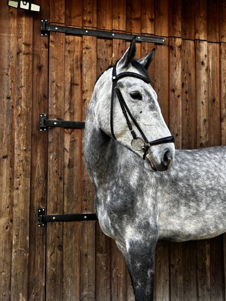 A talented 5-year-old Westphalian gelding is available for sale. He was purchased as a foal directly from the breeder in October 2024 and was gently backed in early 2025. I rode him consistently until May, during which he proved to be very sensitive and eager to work. Due to time constraints, he has not been ridden since May. He is being sold because I am unable to give him the attention he needs and deserves, as he truly needs to be worked regularly. He is not the type of horse that can be left idle for a few days. Starting in December, he will go into training, and the price will naturally increase at that time. In handling, he is very uncomplicated, allowing me to take him alone to the farrier without issues. He currently shares a pasture with two mares and is very social, but he is also accustomed to box stall housing. This is an excellent horse for ambitious riders, suitable for more challenging courses due to his quality and scope. He is vaccinated against tetanus and influenza. His teeth were floated in April. Further information is available upon personal request.