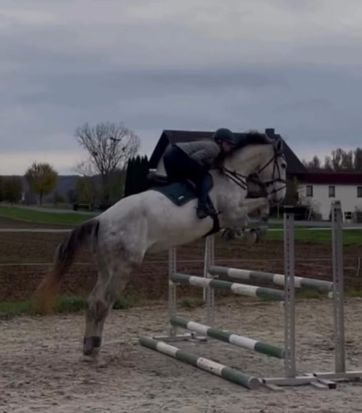 Dieser vermögende Schimmelwallach, von Cornets cero x Landos sucht einen neuen Besitzer. Er besticht durch sein unglaubliches Vermögen, seinen absolut tollen und kopfklaren Charakter, seine große Galloppade mit viel Übersetzung und seine hohe Rittigkeit mit grade einmal 4 Jahren. Für ihn ist es Routine zum Auswärtstraining zu fahren und bewältigt die Parcours gelassen als hätte er noch nie etwas anderes gemacht. Lässt sich super fein in Anlehnung reiten, springt Parcours bis 1,20m momentan arbeiten wir vermehrt am Muskelaufbau. Landet meistens richtig und mit angenehmen, ruhigem Temperament ausgestattet. Fein am Schenkel und Zügel, lässt sich über den Schenkel wenden. Dressurmäßig sind ihm Rahmenerweiterungen,Volten, schenkelweichen, Außengallopp und Übergänge bekannt und werden aktuell verfeinert. Er hat eine große Versammlungsvereitschaft. Kennt Gelände,Longieren, Kinder, geht brav beim ersten Anlauf auf den Anhänger und kennt den Schmied. Turnierkonform geimpft. Wir können uns ihn sowohl im Sportbereich unter ambitionierten oder auch Amateurreiter vorstellen, er wäre aber auch ein treuer Begleiter alsMädchenpferd. Kinder geeignet und absolut kopfklar. Abstammung Cornets Cero (cornet obolensky)x Landos. Er bringt das Vermögen und die Galloppade von cornetobolensky und den Charakter von Calido l mit. Wir geben ihn nur ab weil es nicht perfekt passt. Altersgerecht ausgebildet und startklar für die Saison 2026 Bei Interesse gerne über das kontaktformular aber bevorzugt über WhatsApp unter +49 171 9086565 melden. Für weitere Fragen stehen wir zur Verfügung weitere Fotos oder Videos können auf Anfrage versendet werden.