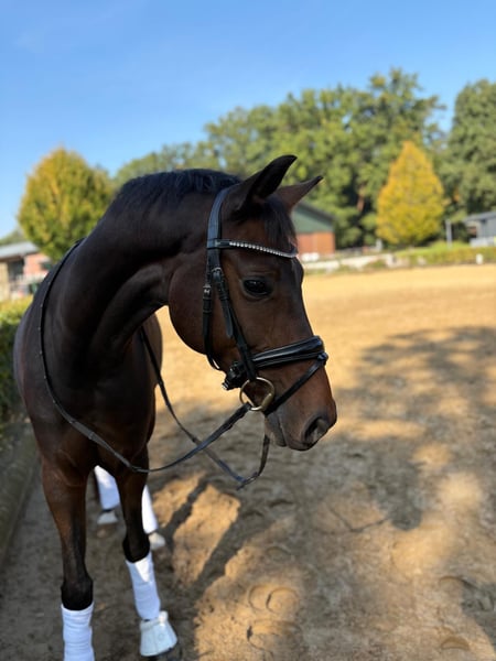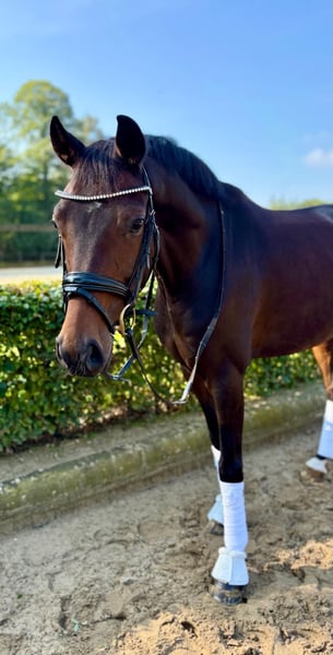 "Fly" is a beautiful six-year-old Westphalian. Due to his delicate build, he has had a bit of "growing and playing time" in the pasture and has been in consistent training for a year now. He is an exceptionally friendly horse who wants to please his rider but still needs a little help in some areas. He loads easily onto the trailer, is very well-behaved with the farrier, and is absolutely trail-worthy (both alone and in a group). Fly has been presented in a Dressage A competition (WN 7.2) where he was extremely confident. He enjoys jumping several small jumps in succession, making him suitable for all areas of equestrian sports. We are looking for a nice home for him where he can continue to develop and showcase his Prince Charming qualities. Ideal for juniors and amateurs looking for a quality young horse for the coming years. (Phone contact daily between 3:00 PM and 8:00 PM)