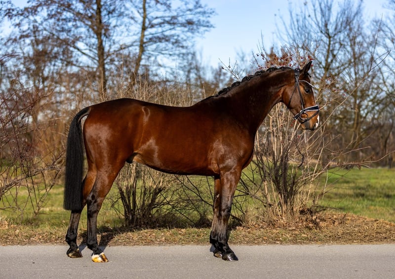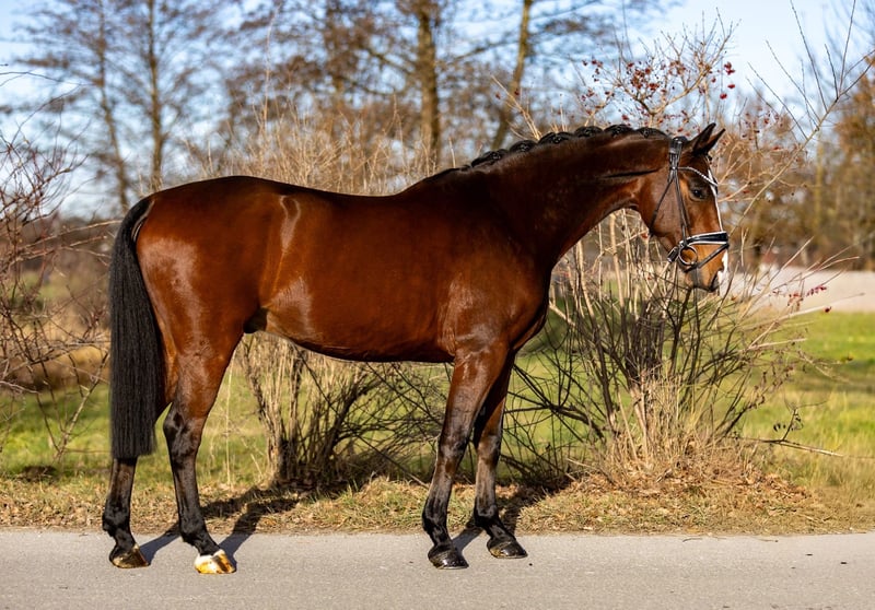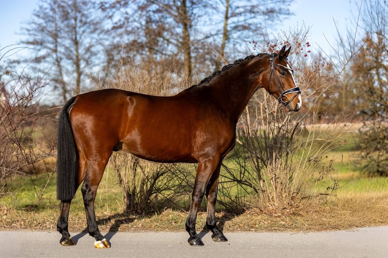 Kleiner Feiner is a stunning, beautifully conformed 5-year-old gelding with lots of charm and presence. A very likable, sweet horse who truly lives up to his name in every way. He was gently backed at his breeder and was then taken over by us, gradually and carefully further trained over the past few weeks. Due to his age and the intentionally calm training, he is still at the beginning of his riding career, but he already proves to be very reliable, well-behaved, and focused under saddle. Kleiner Feiner is easy to ride, pleasant to handle, and always eager to do his best. He enjoys working, learns quickly, and displays a good inner calm. Despite his still limited experience, he performs his tasks honestly and reliably, making him ideal for a rider with some sensitivity or experience with young horses. In daily handling, he is an absolute favorite: very trusting, people-oriented, attentive, and friendly. He enjoys grooming, seeks contact with people, and is always open and approachable. We are convinced: if Kleiner Feiner finds his suitable person, he will become an exceptionally nice, likable, and uncomplicated horse, with potential to develop further as both a dressage and a solid all-round riding horse. A truly charming gelding with heart, character, and a bright future. Location: Rosenheim