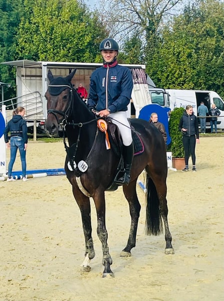 This typical 5-year-old son of Conthargos, out of a Stakkato mare, was born and raised on our farm. He has been gently started under saddle and, after a well-deserved break in the pasture, has been gradually reintroduced to the sport. He has already gained some competition experience and has won show jumping tests in class A, among other achievements. He is uncomplicated not only under saddle but also in handling. His mother is still in our possession and is successfully competing in show jumping up to the advanced level with a young rider. Have we piqued your interest? Please contact us exclusively by phone; we are happy to answer your questions! Additionally, we currently have several other show jumping horses that may be of interest to you!