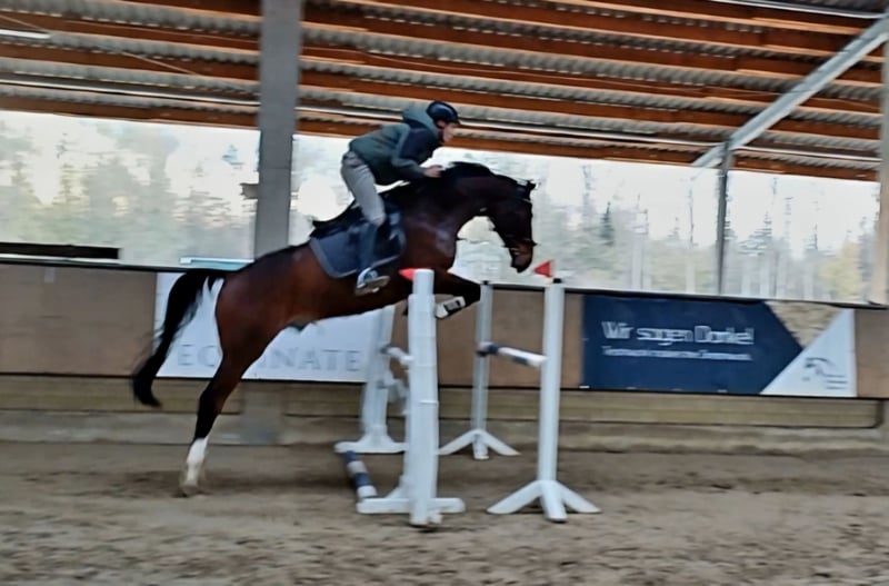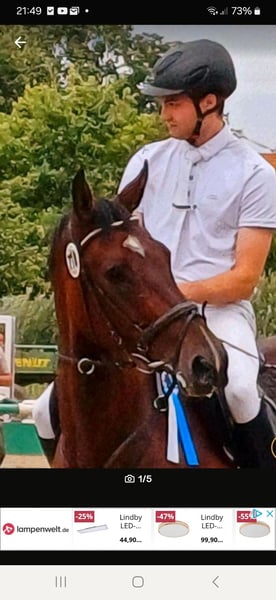 6 jähriger Wallach von Cup Cooper aus einer Heraldik xx/ Grannus Stute ,ca. 1,72 m Stockmass, bei uns geboren und mit Familienanschluss groß geworden, vielseitig einsetzbar, auf Turnieren bis jetzt nur im Springen vorgestellt, Springpferde A gewonnen, Springpferde L plaziert, durch seine Galoppade automatisch schnell, sucht wegen Studium seines Reiters eine neuen Partner oder Partnerin für Sport und Spaß ! Videos per WhatsApp und weitere Auskünfte gern telefonisch 0151 10588899 .