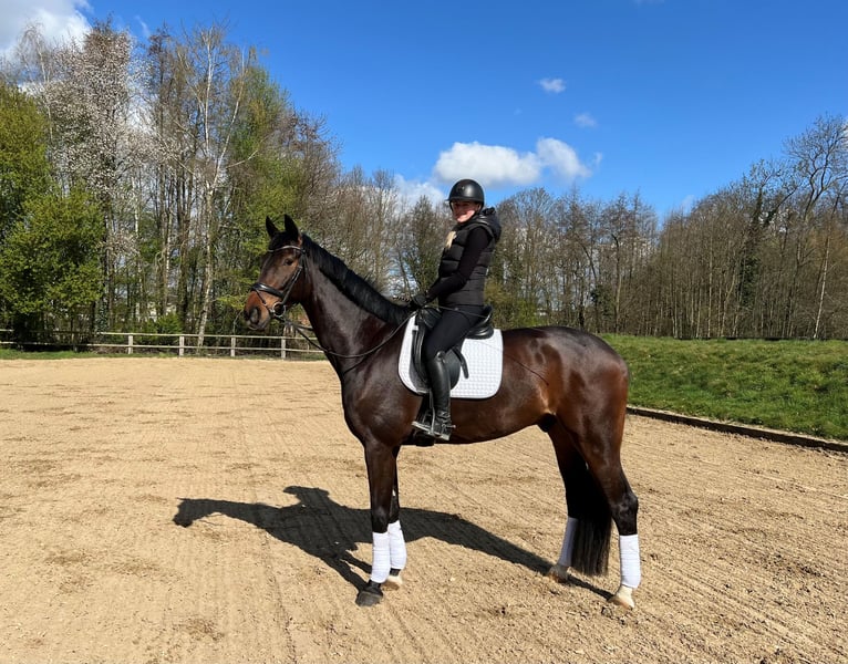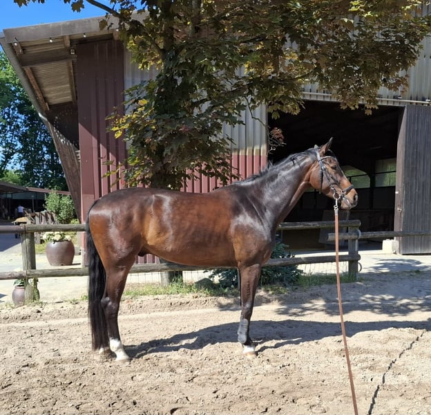 Elegant Westphalian gelding, born in 2019, with a dark brown coat. Standing at 174 cm (17.1 hh), he has an impressive presence and is ideally suited for dressage. He is also suitable for eventing, having achieved placements in dressage A and A-level show jumping. He is confident across varied terrain. This versatile gelding impresses with his friendly nature, willingness to learn, and solid basic training. Perfect for ambitious, strong riders seeking a reliable horse with potential. For more information or to arrange a viewing, please contact us. We do not support riding tourism; only serious inquiries, please!