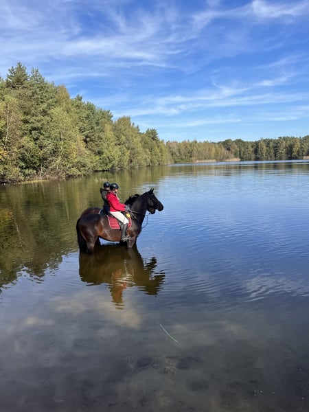 Schweren Herzens suchen wir für unseren lieben Carl („Carlchen“) ein neues Zuhause aufgrund von Zeitmangel. Carl ist 6 Jahre alt und hat ein Stockmaß von ca. 177 cm. Er ist ein beeindruckender, großrahmiger Wallach mit einem sehr freundlichen Wesen. Im täglichen Umgang zeigt er sich stets lieb, menschenbezogen und unkompliziert. Altersbedingt kann er sich in neuen Situationen natürlich auch mal erschrecken, bleibt dabei aber gut händelbar. Er ist sowohl die Weidehaltung in der Herde als auch zu zweit gewohnt und bringt vom Charakter alles mit, um auch in einem Offenstall glücklich zu sein. Carl ist ein tolles Pferd für den erfahrenen Freizeitreiter, der Freude an einem jungen Pferd hat und ihm Sicherheit geben kann. Bei ihm wurde 2024 Arthrose diagnostiziert. Der Befund hat keine Auswirkungen auf das tägliche Reiten. Dennoch sollte er nicht im Springsport eingesetzt werden – leichte Gymnastiksprünge sind jedoch problemlos möglich. Er wird daher als Freizeitpartner abgegeben. Wir wünschen uns für Carl ein liebevolles Zuhause, in dem er gefördert, aber nicht überfordert wird und einfach Pferd sein darf. Bei ernsthaftem Interesse freuen wir uns über eine Nachricht per WhatsApp.