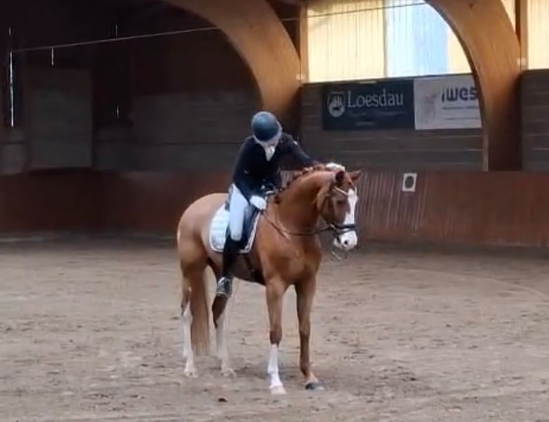 5yo capital Westphalian chestnut gelding by Benicio x Fürst Heinrich, 1.69 stm.*, brilliant with his habitus, very gently broken in late, equipped with three excellent basic gaits, which make him a special quality horse for the big sport, shows the best character.