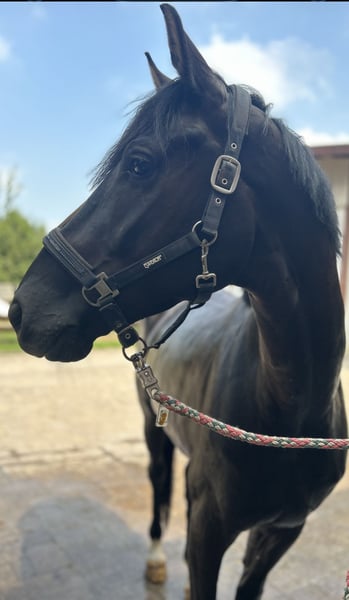 Lumière d’Arrow – 6 years old | approx. 17.5 hh | by La Vie x Fürst Heinrich Arrow is an impressive black stallion with excellent basic gaits and great potential for dressage. His presence immediately catches the eye – but his character is even more convincing. In handling, he is a true sweetheart: affectionate, cuddly, attentive, and always friendly. He loves people, dogs, and other horses and wants to be involved in everything. Farrier visits and loading are completely straightforward. He is respectful, intelligent, and seeks a close bond with his handler. Under saddle Arrow possesses a lot of quality – he has above-average gaits with a wonderful uphill canter. However, he requires an experienced and secure rider who exudes calmness and confidence. Riding him nervously or in a hurried manner unsettles him. With patience and trust, he will reveal his full potential. * Not suitable for beginners or reintegration riders * Not for dealers or quick resale projects He is mentally clear and not malicious but can react sensitively and may sometimes make a quick forward movement or become a bit more lively – therefore, we are looking for someone with feeling and experience. Our wish: A home where he is seen as a partner, someone who: * Recognizes his talent * Gives him time * Builds trust and security 📍 Location: Aachen Viewing and trial riding possible at any time by appointment – we charge €30, which will be credited towards the purchase price! If you are looking for a horse that wants to grow with you and gives as much love and attention as you give him – then Arrow might be just the right match. We look forward to hearing from you!