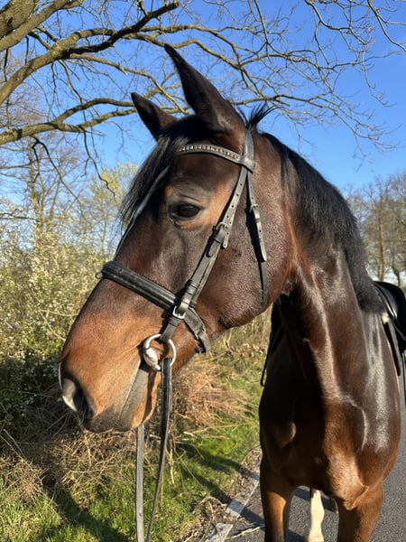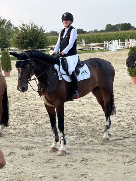 Uccello ist ein schicker 7-jähriger Wallach von Unlimited x Collin, der durch sein ausgeglichenes Wesen und seinen klaren Kopf überzeugt. Wir haben ihn selbst gezogen. Seine Mutter hat mehrfach M-Springen gewonnen. Er ist sehr brav im Umgang und trotz seiner Größe von 1,85m sehr unkompliziert im täglichen Handling. Beim Ausreiten zeigt sich Uccello sehr zuverlässig – sowohl alleine als auch in der Gruppe. Er ist sehr unerschrocken und gelassen gegenüber neuen Eindrücken. In der Dressur wurde er bisher altersgerecht gearbeitet und ist hier noch nicht weit gefördert, bringt aber eine gute Basis und Lernbereitschaft mit. Besonders hervorzuheben ist seine Einstellung am Sprung: Trotz seiner Größe ist er sehr klug, vorsichtig und ehrlich. Auf dem Turnier hat er bereits Springpferde A gewonnen und ist mehrfach platziert. Ein tolles Pferd für Reiter, die einen braven, zuverlässigen Partner suchen und ihn weiter fördern möchten – sei es im Freizeit- oder Sportbereich. Nur in allerbeste Hände abzugeben, keine Händler! Ein TÜV ohne Befund aus 09/24 liegt vor. Weitere Infos, Fotos oder Videos gerne auf Anfrage.