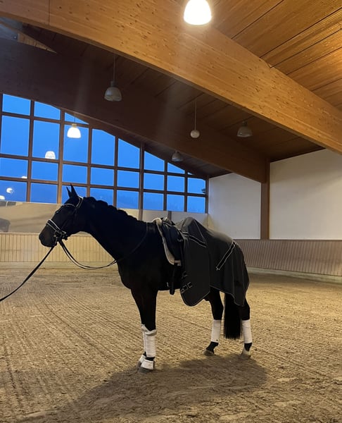 Na sprzedaż oferowany jest ten niezwykle elegancki, sześciolatek wałach od Apollon x Breitling o ponadprzeciętnych podstawowych chodych. Posiada bardzo elastyczną kłus z dużym napędem i już teraz wykazuje duży talent do zbioru oraz przyszłościowo do piruety i piaffé. Jego galop można opisać jako równie dobry, wyraźnie zbiegający się do góry i przestronny, już teraz pokazuje solidnie skoki w skokach, choć jeszcze zielony, z lotnymi zmianami. W stępie jest niezwykle rytmiczny i spokojny. Ten sześciolatek ma wszystko, aby później z powodzeniem startować w klasach M/S na konkursach, ale równie dobrze sprawdzi się dla mniejszych klas lub jako koń rekreacyjny. Aby dać mu czas na wzrost i rozwój, został dość późno rozpoczęty w treningu, dlatego obecnie potrzebuje jeźdźca, który zapewni mu trochę pewności siebie – jego przyszły opiekun powinien mieć co najmniej poziom A. „Anton” to bardzo sympatyczny koń, który codzienną pracą sprawia wiele radości, chętnie zadowala swojego jeźdźca i zawsze chce zrobić wszystko dobrze. Nie ma żadnych złych nawyków i z pewnością będzie odpowiedni także dla mniej doświadczonych jeźdźców. Jego wzrost 1,67 m pozwala na komfortowe użytkowanie zarówno przez dużych, jak i mniejszych jeźdźców, dobrze się go ujeżdża i łatwo go wprowadzić w ramę. Jest lekko w ujeżdżeniu i naprawdę dobrze reaguje na sygnały. To świetna okazja, aby nabyć wspaniałego konia o ponadprzeciętnej jakości w atrakcyjnej cenie. Oczywiście „Anton” posiada ważny przegląd rentgenowski. Filmy można przesłać w każdej chwili przez WhatsApp! Zainteresowanych prosimy o telefon lub wiadomość na WhatsApp: 017620052380. Można go obejrzeć w 35708 w każdej chwili, istnieje możliwość pozostawienia go tam na dalsze szkolenie.