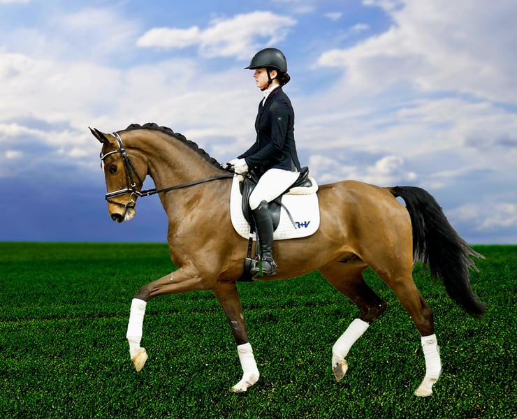 6yo bay Westphalian gelding, 1.67 stm*, son of Sir Heinrich with a high degree of basic impulsion combined with a very good working attitude, his friendly nature will take everyone's heart by storm, three top gaits characterize him, moves at A/L level Placed in class A in 2024