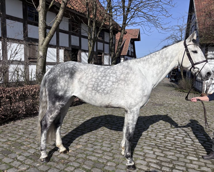 Abzugeben ist ein sehr braver und abgeklärter 9 Jähriger Wallach von Cordess. Cordino zeigt sich in der dressurmäßigen Arbeit leichtrittig mit genügend go. Am Springen hat er viel Freude und zieht den Sprung an. Dabei lässt er sich durch nichts aus der Ruhe bringen. Auch Unterbauten oder Wassergräben sind kein Problem. Beim ausreiten, ganz egal ob alleine oder in der Gruppe ist er ebenfalls entspannt. Er kennt Trecker, Hunde, Kinder uvm. Er steht bei uns im Offenstall in einer Herde mit 24/7 Heu ohne Kraftfutter. Er liebt es über die Wiese zu galoppieren und mit den anderen Pferden zu spielen. Kennt natürlich Anhängerfahren, Schmied, Führanlage, Solarium etc. Er wurde im Januar 2026 inkl. Rücken Geröngt. Soweit uns bekannt gibt es keine Gesundheitlichen Einschränkungen oder Vorerkrankungen. Ein Tüv durch den eigenen Tierarzt kann jederzeit durchgeführt werden. Anfragen gerne per WhatsApp an +49 172 3725170