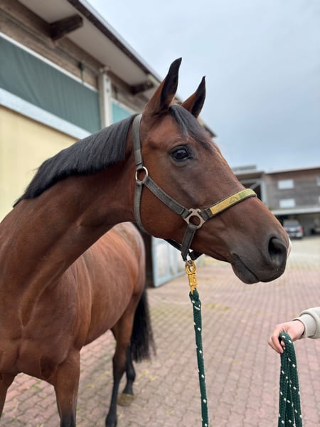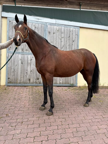 Due to a reduction in our horse herd, we are offering directly from the breeder: A stunning, well-moving 6-year-old brown mare with a slight turn of the right front leg (see photos). She has foaled once so far. Born and raised with us, she has been absolutely robust and healthy to date. Private sale as a companion or groundwork horse. Only to a caring owner seeking a paddock box and turnout. Please contact us via WhatsApp at +49 173 8500776.