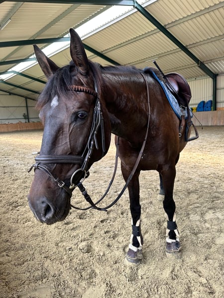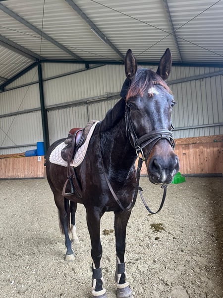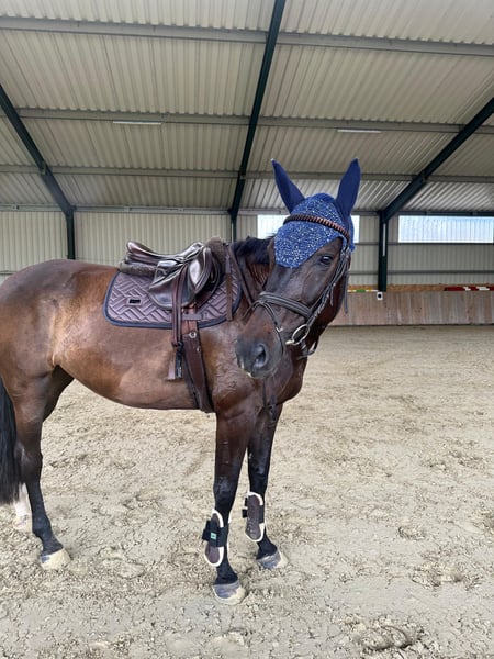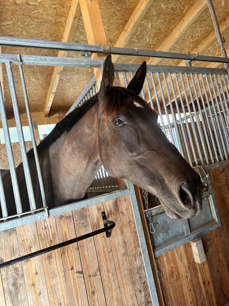 For sale is a 7-year-old Württemberger mare. Last year, she competed successfully in E and A level show jumping as well as in A-level show jumping for young horses. She is a very steady and confident mare; you can ride her anywhere without issues. She has a reliable stop and is an excellent jumping partner. She is very affectionate and attentive. She has no problems being alone and is well-behaved during hacking and farrier visits. She is currently clipped and wears rugs. She is familiar with both open stable and box stall housing. She has attended various training clinics and always behaves impeccably. She is also suitable for children and teenagers. She is being sold with a heavy heart due to personal circumstances. Price is negotiable! Saddle, breastplate, and bridle can be purchased additionally. The horse will come with much basic equipment at the time of transfer, as it belongs to her. No saddle pad included; the buyer is responsible for one. The horse is sold with a sales contract. We look forward to your inquiries!