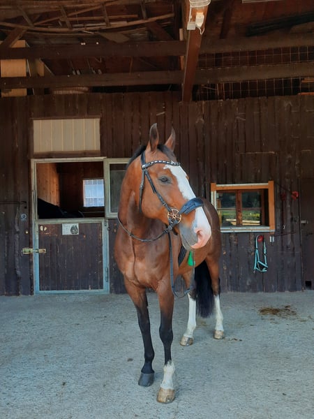 Cricket ist ein 14-jähriger Württemberger Wallach mit einem starken, ehrlichen Charakter und viel Persönlichkeit. Seit 2020 ist er in meinem Besitz – nun wünsche ich mir für ihn ein Zuhause, in dem er die Aufmerksamkeit, Ruhe und Zuwendung bekommt, die er verdient. Bevor er zu mir kam, war Cricket im Springsport aktiv, hat sich jedoch gezeigt, dass das nicht seiner Welt entspricht. Im Freizeitbereich hingegen blüht er auf – er mag ruhige, abwechslungsreiche Arbeit, bei der Vertrauen wichtiger ist als Leistung und wo er ohne Druck gearbeitet werden kann. Deshalb wird er ausschließlich als Freizeitpferd abgegeben. Er genießt ausgedehnte Ausritte, Bodenarbeit und ganz entspanntes Arbeiten auf dem Platz. Dabei ist er trittsicher, neugierig und für fast jeden Spaß zu haben. Cricket geht zuverlässig ins Wasser, über Brücken, kennt Kühe, Straßenverkehr und geht auch alleine ins Gelände. Auch das Halsringreiten bereitet ihm Freude und zeigt, wie fein er auf seine Bezugsperson reagiert. In der Herde zeigt er sich selbstbewusst und eher dominant, findet mit einem passenden Partner jedoch seine Balance. Beim Hufschmied ist er brav, gesundheitlich unauffällig, und eine Ankaufsuntersuchung kann gerne durchgeführt werden. Cricket ist ein Pferd mit viel Persönlichkeit – ehrlich, feinfühlig und willensstark. Er braucht eine sensible, erfahrene und konsequente Bezugsperson, die seine Eigenheiten respektiert und ihm zugleich klare Strukturen bietet. Er ist kein Anfängerpferd und nicht für den Sport geeignet, aber für jemanden mit Pferdeverstand und Herz ein treuer, charakterstarker Freizeitpartner. Nach reiflicher Überlegung suche ich nun für ihn den bestmöglichen Platz – Platz vor Preis! Weitere Informationen und Fragen beantworte ich gerne persönlich.