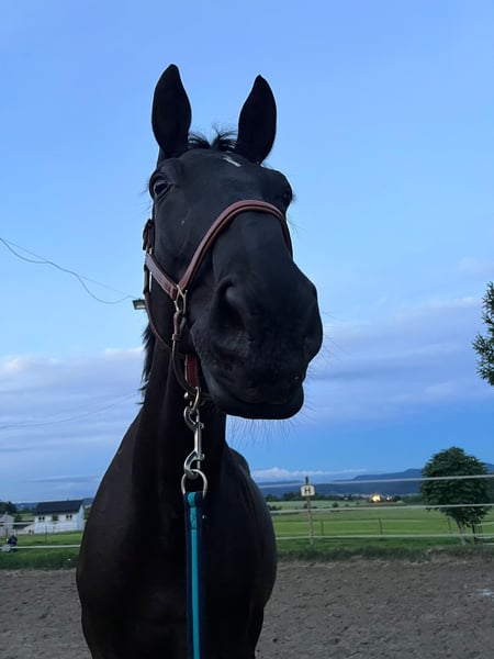 C'est à contrecoeur que je cherche une nouvelle famille aimante pour mon hongre de 14 ans, car je ne peux plus lui consacrer autant de temps qu'il le mérite. Il mesure environ 1,80 m au garrot. C'est un cheval très affectueux, proche de l'humain et câlin, qui a besoin d'une ou deux personnes de référence. En dressage, il se situe à un niveau solide d'initiation/évolution. Pour varier les plaisirs, il connaît le travail aux cavaletti, les exercices avec barres au sol, la longe ainsi que de petits sauts. Il a également déjà pratiqué le parcours, mais cela n’a pas été renforcé ces derniers mois. En extérieur, il se montre sage, que ce soit seul ou en compagnie. Cependant, il ne convient pas à un cavalier débutant ni à une personne facilement effrayée, car il souhaite être stimulé en dressage et peut, dans un environnement inconnu, sauter de côté de temps à autre. Il connaît aussi la carrière et le paddock. Nous souhaitons pour lui un foyer où il sera autant encouragé qu’aimé et choyé — un endroit où il sera considéré comme un membre de la famille et où il pourra s’épanouir dans une activité variée et enrichissante. Nous l’imaginons très bien en pension en paddock ou en box avec sortie quotidienne au pâturage.