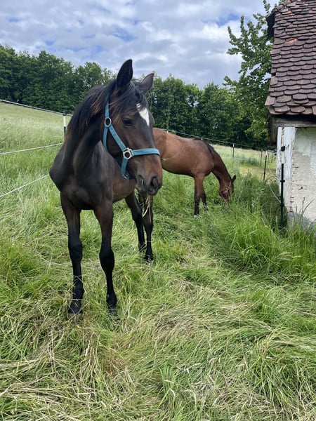 Amicelli ist ein langbeiniger Wallach mit sehr guter Springabstammung. Er kennt das Fohlen-ABC und ist sehr verschmußt. Auch Landmaschinen und Kinder ist er gewohnt. In der Herde ist total unkompliziert und eher rangniedrig Platz vor Preis.