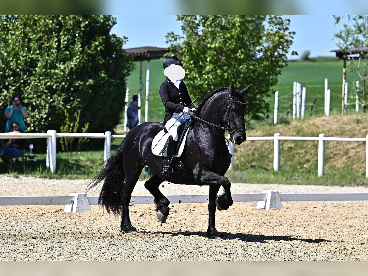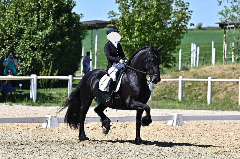 For sale due to health reasons: an elegant Friesian mare – perfect for dressage! This impressive Friesian mare, born in 2015, is available. With her stunning black coat and a height of 16.1 hh, she impresses with her noble appearance and refined presence. She demonstrates considerable talent and a good basic gait. The mare is friendly and well-mannered, making her suitable for both experienced riders and ambitious young riders. Please feel free to contact me for more information or to arrange a viewing. A true gem for any dressage enthusiast! Training level: in L/M training First competition experience (1st place in class A, 1st place in L/M classes) Farrier- and loading-friendly Four-hoof shoes Veterinary check from 2024 available (no X-rays) AKG (performance test) possible upon request (costs to be covered by the buyer)
